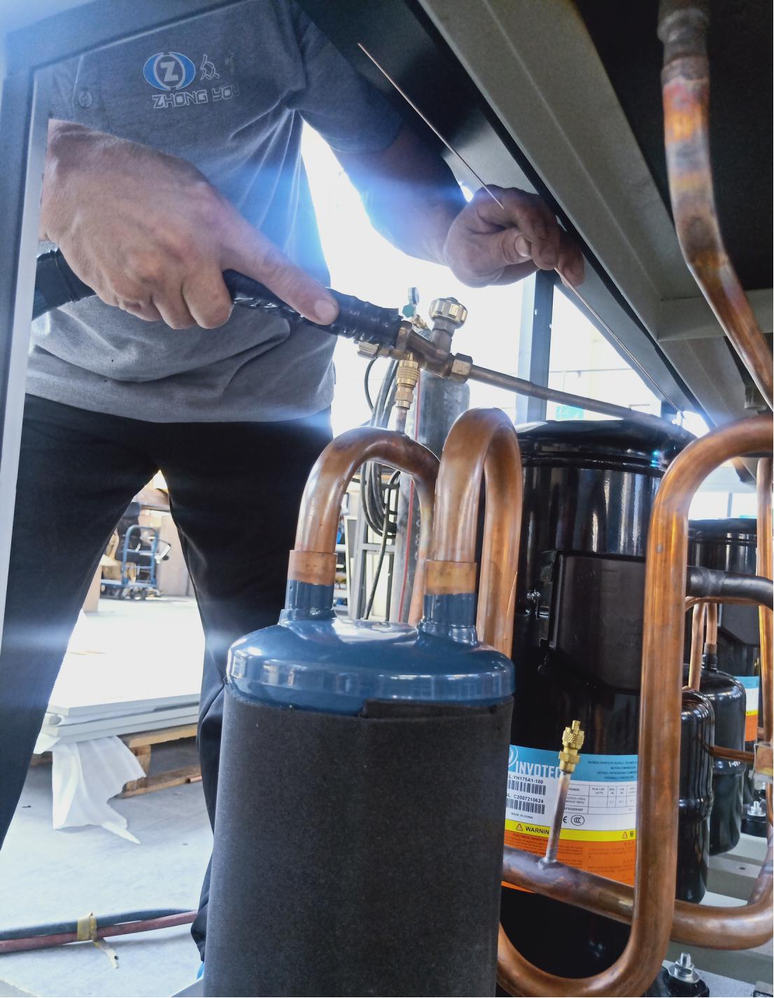 1、首先將制冷壓縮機(jī)拆卸下來然后通電讓其運(yùn)行。此時(shí)用手指堵住制冷壓縮機(jī)的排氣孔片刻之后移開手指。因?yàn)閴嚎s機(jī)內(nèi)有壓力,所以在用手指堵住排氣孔的時(shí)候,手指會明顯的感受到排氣壓力。當(dāng)把手指移開的時(shí)候,我們就會聽到“呲呲”的排氣聲。如果手指感受不到壓力或者是移開手指后沒有聲音,則表面壓縮機(jī)可能存在故障;