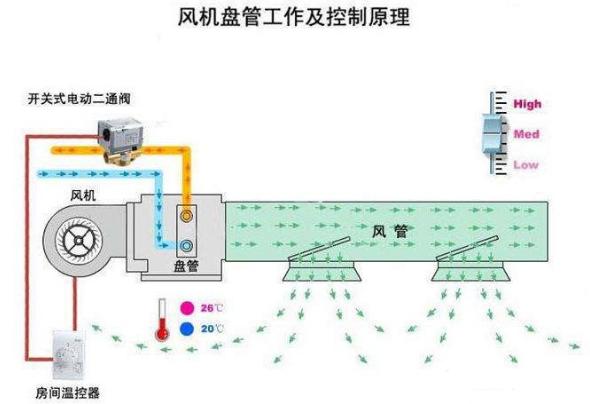 風(fēng)機盤管控制工作原理風(fēng)機盤管控制多采用就地控制的方案,分簡單控制和溫度控制兩種:風(fēng)機盤管簡單控制:使用三速開關(guān)直接手動控制風(fēng)機的三速轉(zhuǎn)換與啟停。風(fēng)機盤管溫度控制:使用溫控器根據(jù)設(shè)定溫度與實際檢測溫度的比較、運算,自動控制電動兩/三通閥的開閉,風(fēng)機的三速轉(zhuǎn)換,或直接控制風(fēng)機的三速轉(zhuǎn)換與啟停,從而通過控制系統(tǒng)水流或風(fēng)量達到恒溫。風(fēng)機盤管加新風(fēng)系統(tǒng)分為兩部分,中央空調(diào)風(fēng)機盤管和新風(fēng)系統(tǒng),風(fēng)機盤管是中央空調(diào)末端設(shè)備,新風(fēng)系統(tǒng)負擔(dān)新風(fēng)負荷以滿足室內(nèi)空氣質(zhì)量,風(fēng)機盤管加新風(fēng)系統(tǒng)是水系統(tǒng)空調(diào)中一種重要形式,也是民營建筑中采用較為普遍的空調(diào)形式。