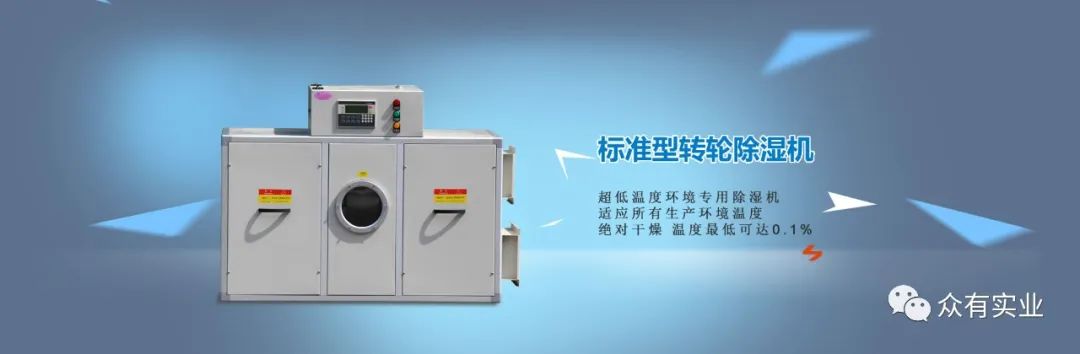 ⑸除濕機(jī)的選型:用一般空調(diào)壓縮機(jī)的冷凍除濕法只能把空氣露點(diǎn)溫度降至10℃,而此軟膠囊干燥室內(nèi)的露點(diǎn)溫度要求達(dá)到1℃以下,故用一般冷凍除濕法根本無(wú)法達(dá)到生產(chǎn)工藝要求。而采用空調(diào)制冷加轉(zhuǎn)輪除濕機(jī)之組合機(jī)的方法可以輕易使空氣露點(diǎn)溫度降至-40℃。