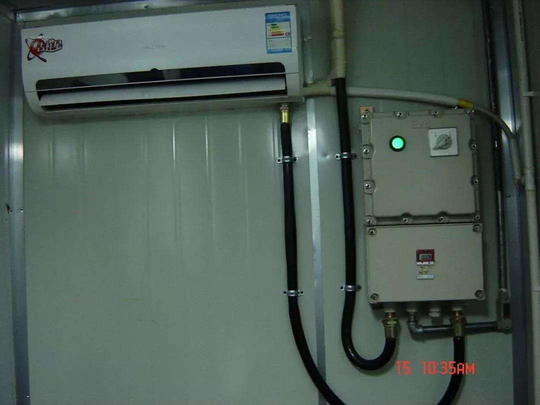 工業(yè)防爆空調(diào)保持普通空調(diào)基礎(chǔ)上,對電氣系統(tǒng),包括壓縮機、風機、電氣線路進行防爆處理。控制線路采用以光耦固態(tài)繼電器為核心的電氣制系統(tǒng)進行整體防爆,原保持原來空調(diào)的基本功能下,簡化結(jié)構(gòu),簡化操作,使設(shè)備在性混合氣體環(huán)境中能安全使用。