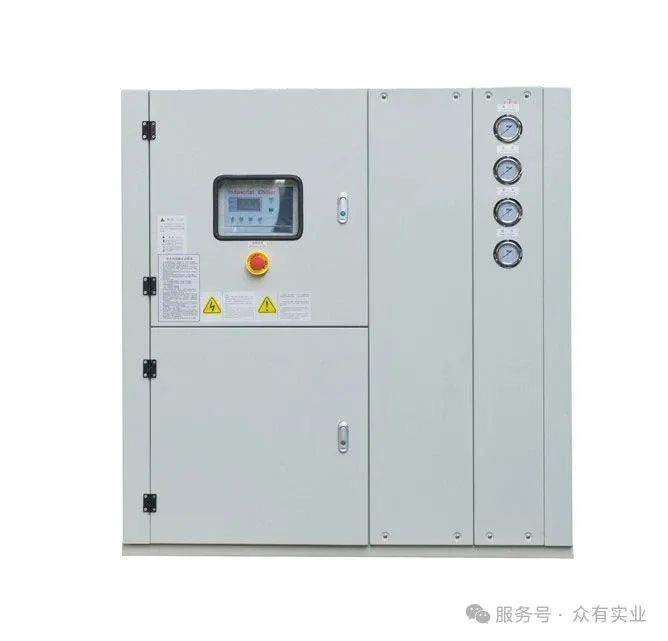 工業冷水機分為水冷式工業冷水機和風冷式工業冷水機,他們兩者的區別主要在于冷凝器的不同。水冷冷水機的冷凝器主要通過循環冷卻水來帶走熱量,因此水冷冷水機的冷凝器也通常稱為水炮。與水冷式不同,風冷式工業冷水機采用風扇做為散熱。通常采用翅片式的冷凝器,翅片其實是指鋁片,即將需要換熱的部位采用外部安裝鋁片,以達到高效散熱,再通過強力風扇將熱氣抽出。