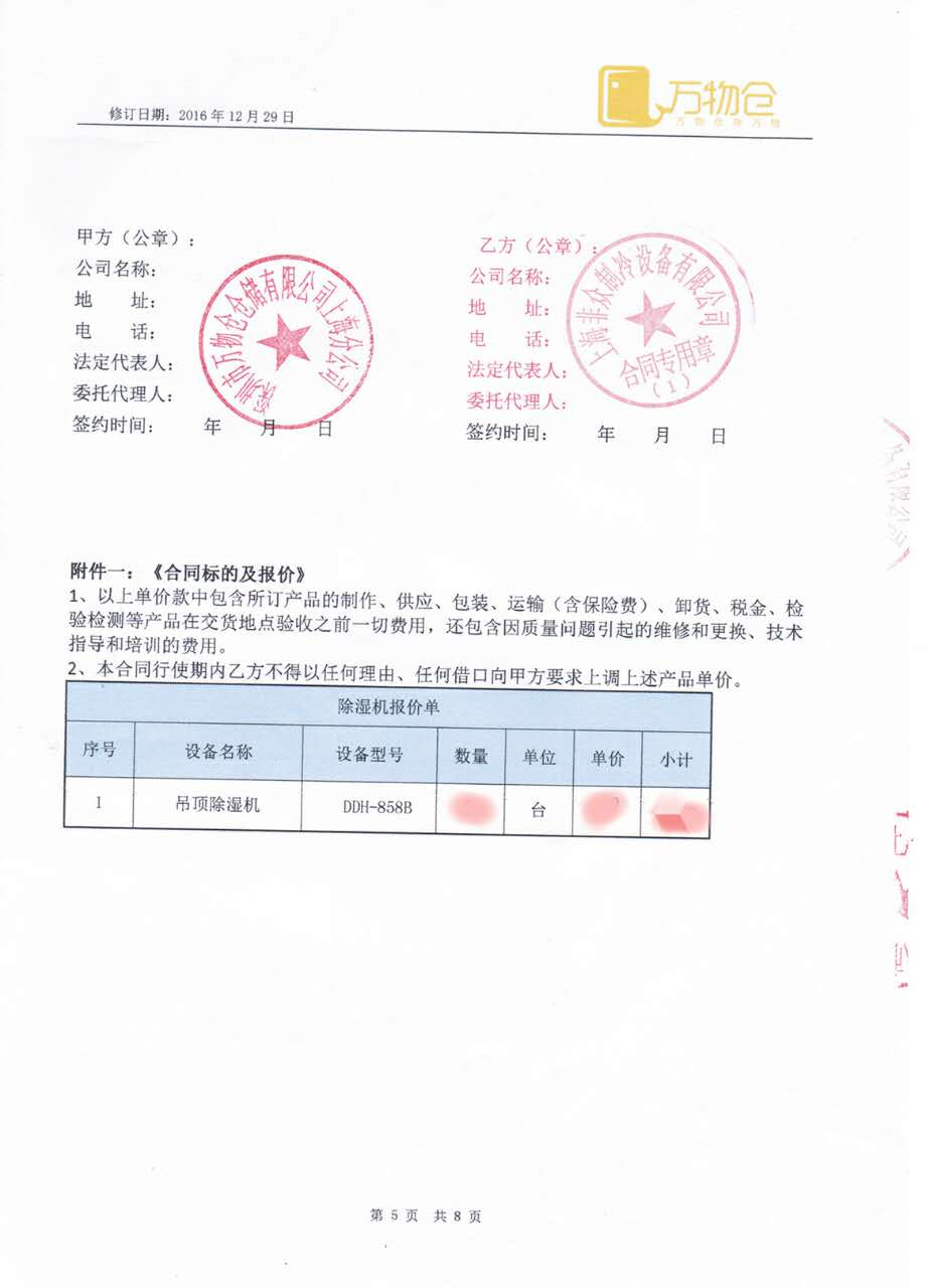 萬物倉公司的工作人員了解到我司的除濕設(shè)備來電咨詢,并提出了對于環(huán)境溫濕度的技術(shù)要求,我方銷售經(jīng)過專業(yè)評估進行選型后,為客戶推薦了DDH-858B吊頂除濕機來用于倉儲車間,為以后的再度合作達成堅韌的基礎(chǔ)。感謝萬物倉公司對眾有人的信任、眾有產(chǎn)品質(zhì)量的認可,更期待我們的愉快合作!