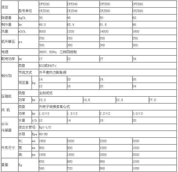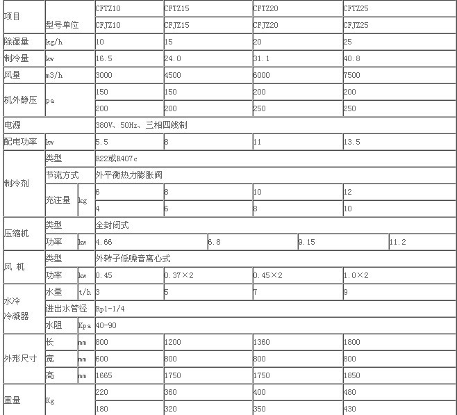 水冷調(diào)溫、降溫型常規(guī)除濕機(jī)技術(shù)指標(biāo)<1>