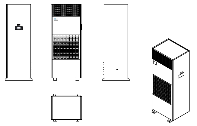 外形尺寸mm (高度不含送風(fēng)彎頭) |